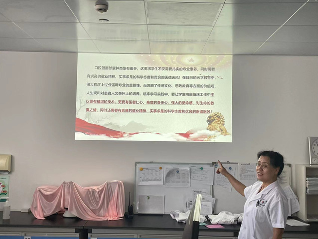 最后赵老师也提到,口腔颌面部囊肿类型有很多,这要求学生不仅需要扎实的专业素养,同时需要有崇高的敬业精神、实事求是的科学态度和优良的医德医风。在目前的医学教育中,很大程度上过分强调专业的重要性,而忽略了传统文化、思政教育等方面的价值观、人生观和对患者人文关怀上的培养。教师授课需要让学生明白临床工作中不仅要有精湛的技术,更要有医者仁心、高度的责任心、强大的使命感、对生命的敬畏之情,同时还需要有崇高的敬业精神、实事求是的科学态度和优良的医德医风!