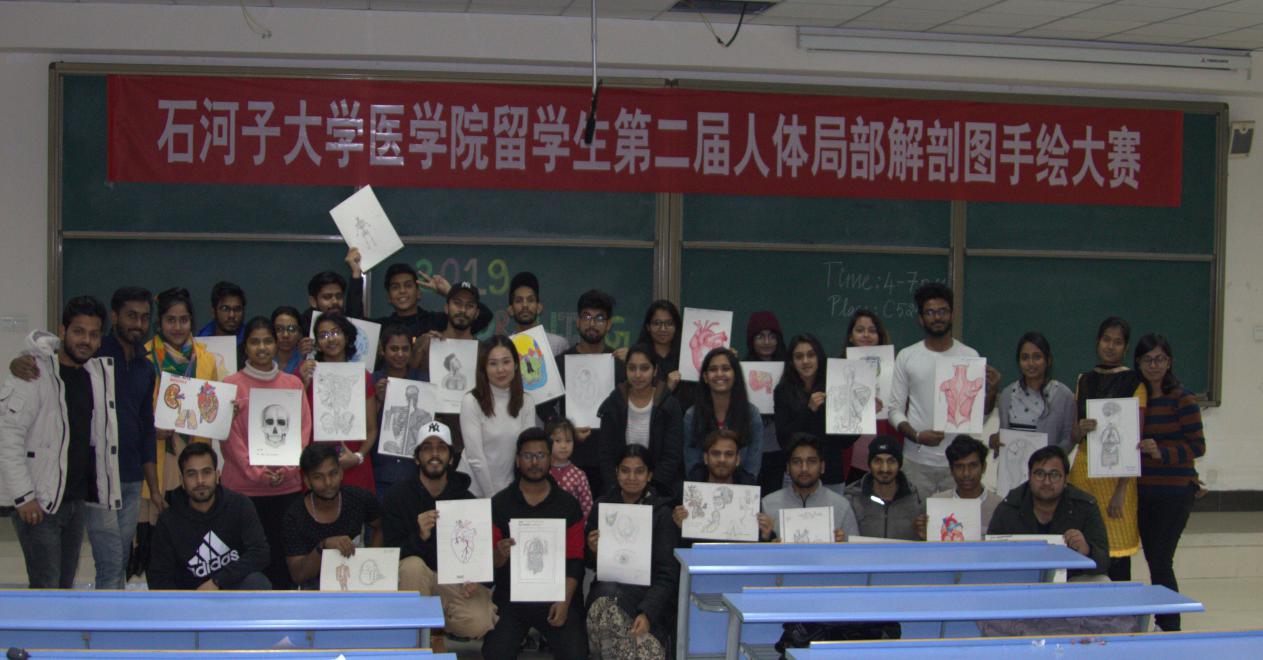 手绘大赛不仅是对学生绘画能力的展示,更重要的是对扎实解剖学基础知识的考验。参赛学生BHAVANA表示,在现场限定时间内完成作品体现了每个参赛学生的真实水平,对每个学生公平,下次比赛会有更多的学生参加,希望办公室每年都组织这样的活动。
