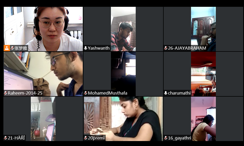 期初,留学生的语言问题、网络不稳定等问题给管理部门提出了挑战。在学习、研究、比较、测试之后yl23455永利官网留办选择了全英文界面,有锁频功能的Schoology为考试系统,同时让考生进入腾讯会议实施在线监考。首先,学生需要两部手机或一部手机一台电脑,一个用于进系统答题,一个用于进腾讯视频会议供在线监考。考试过程中学生遇到问题在监考群里反映,留办管理人员一对一跟学生连麦视频解决学生的问题。考试过程中管理人员始终在系统实时查看学生答题情况,学生交卷后,管理人员在系统中确认是否提交完毕,提交成功者方可离开视频会议。