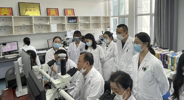 6月24日,在兵团病理质控中心主任胡建明教授带领下,专家们赴伊宁市兵团第四师医院病理科开展病理质控督导检查工作,同时就进一步推进合作进行座谈。兵团第四师医院副院长马富兵、病理科主任丁雨飞教授对质控专家的到来表示热烈欢迎和衷心感谢。专家们从病理常规制片、免疫组化染色技术、病理诊断等各方面进行质控和指导,并就开展远程病理会诊等方面进行了深入交流。