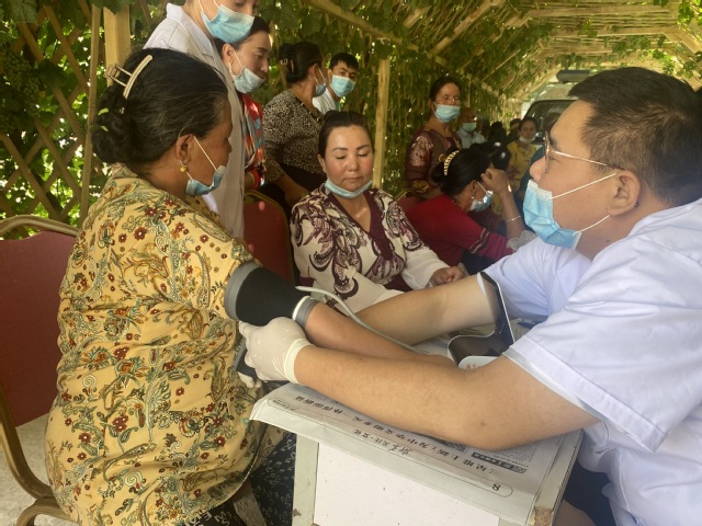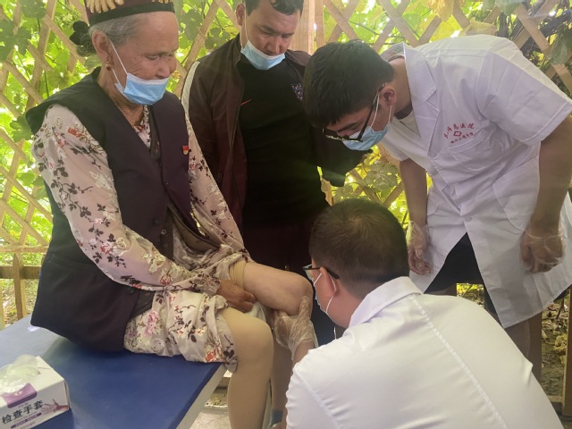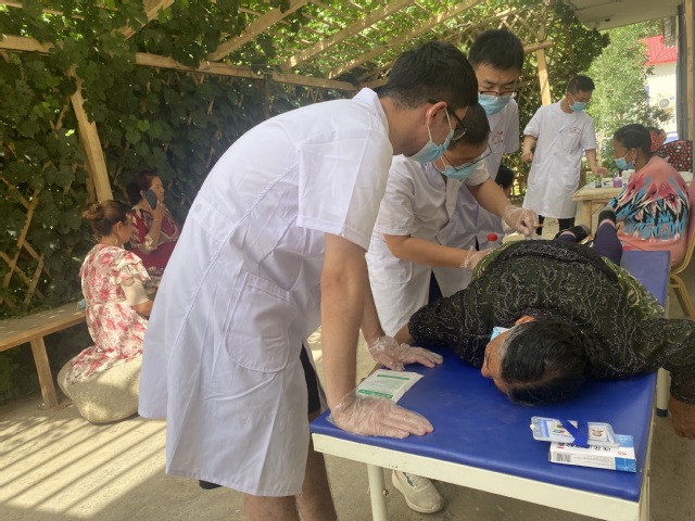 “yl23455永利官网老师和学生太贴心了,把健康体检送到我们家门口,亚克西!”6月28日,yl23455永利官网“医心助南、守‘肤’健康”爱心医疗社会实践服务团联合三师四十二团医院在喀什地区胡杨村开展爱心义诊活动。