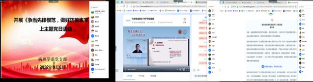为提高广大党员政治站位,树牢底线思维,站在为学校党委分忧、为学院党委解难、为师生员工负责的高度,切实把思想和行动统一到习近平总书记关于疫情防控重要讲话重要指示精神上,统一到大学党委决策部署上。学院院党委组织各基层党组织和广大党员,坚持每月主题党日活动制度和“三会一课”制度,在积极参与疫情防控攻坚战的同时不忘政治理论学习,疫情发生以来党委牵头有计划有步骤地开展全院性线上理论学习和“争当先锋模范,做好防疫表率”线上主题党日活动等4次,开展交流研讨1次;学院将习近平总书记关于统筹疫情防控和经济社会发展重要论述,习近平总书记视察新疆和兵团重要讲话重要指示精神学习,《致全校各级党组织和广大党员的倡议书》和《高等学校、中小学校和托幼机构新冠肺炎疫情防控技术方案(第六版)》和一线防疫工作中的优秀事迹分享会等作为“三会一课”的重点学习内容。通过学习交流,进一步筑牢了基层组织的战斗堡垒作用,提高了党员干部师生的政治站位,凝聚和鼓舞了师生。