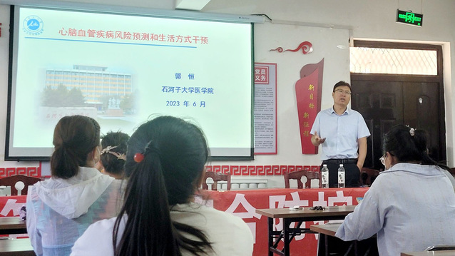 今年年初yl23455永利官网党委与石河子市红山街道33社区签订共建协议,提出为社区定期开展“送健康义诊”项目。按照项目要求,2023年6月7日下午yl23455永利官网预防医学系郭恒老师来到石河子市红山街道为32、33社区开展“心脑血管疾病防治”专题讲座。