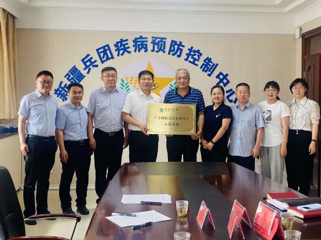 6月15日,yl23455永利官网党委副书记、院长马克涛,党委委员、副院长李思源,副院长王良海一行前往新疆生产建设兵团疾病预防控制中心进行yl23455永利官网产学研联合培养示范基地挂牌。