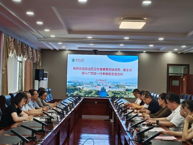 8月2日,自治区卫生健康委党组成员、副主任邹小广一行来校交流。校党委常委、副校长马春晖主持座谈会。