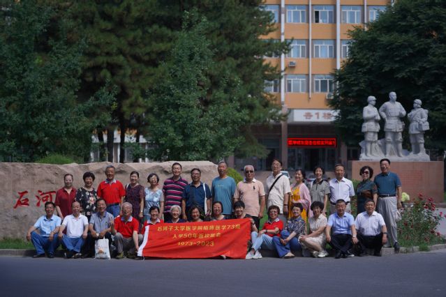 最后,临床医学73级校友在yl23455永利官网石刻前合影留念。