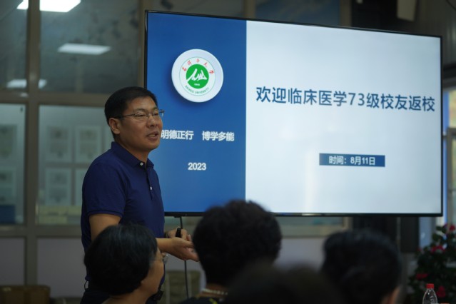 8月11日,在入学50周年之际,我院临床医学专业73级校友专程返回母校相聚,并在杏5楼教师发展中心举行座谈。学院党委副书记、院长马克涛、党委副书记于磊出席座谈。