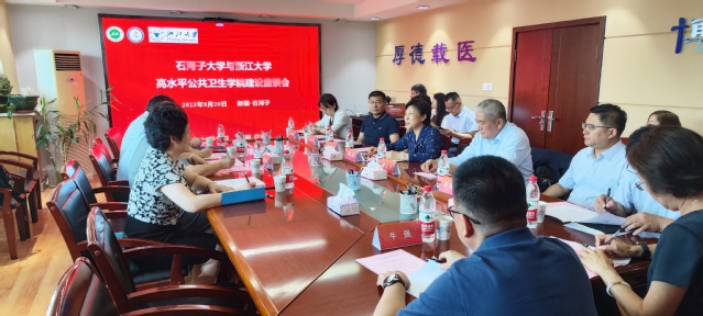 双方围绕高水平公共卫生学院建设的目标、方案和具体共建措施,针对所需帮扶点和工作思路进行了深入交流与研讨。双方均表示要以此次结对帮扶合作为契机,详细讨论工作方案,加强交流合作,精准帮扶,快速推进建设“高水平公共卫生学院”,为“健康中国”和“健康兵团”建设保驾护航,为西部地区的公共卫生事业贡献力量。