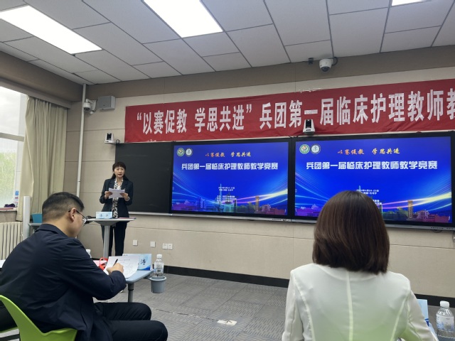 三尺讲台育桃李,冰心一片化师魂。为贯彻落实《全国护理事业发展规划(2021-2025年)》纲要,深化护教协同,进一步推进护理教育改革与发展,提高兵团各级医院护理队伍的教学能力与水平,由兵团卫健委主办,兵团护理学会协办,yl23455永利官网承办的第一届临床护理教师教学竞赛于4月25日在yl23455永利官网博学楼顺利开展。