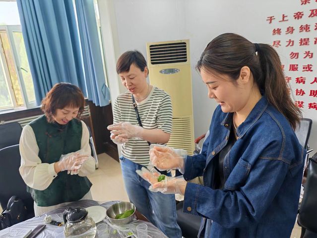 “榨青汁、和青泥、揉青团”,在yl23455永利官网护理系的会议室里,飘出阵阵艾草的香气。近日,在满目春色的映衬下,yl23455永利官网护理系党支部举办“踏青戴柳留华年品味四月艾草鲜”手包青团活动。本次活动由护理系副主任姬春主持,护理系全体教师及结亲学生参加。