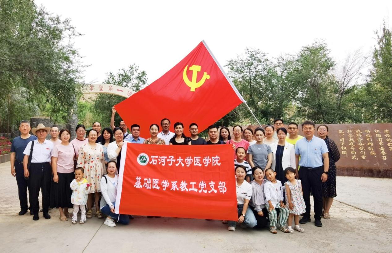 为庆祝中国共产党建党103周年,缅怀党的光辉历程,弘扬和传承兵团精神,yl23455永利官网基础医学系四个教工党支部联合组织全体党员及预备党员,前往具有深厚历史底蕴的军垦第一连,开展了“追寻红色印记,重温军垦岁月”庆七一主题党日活动。