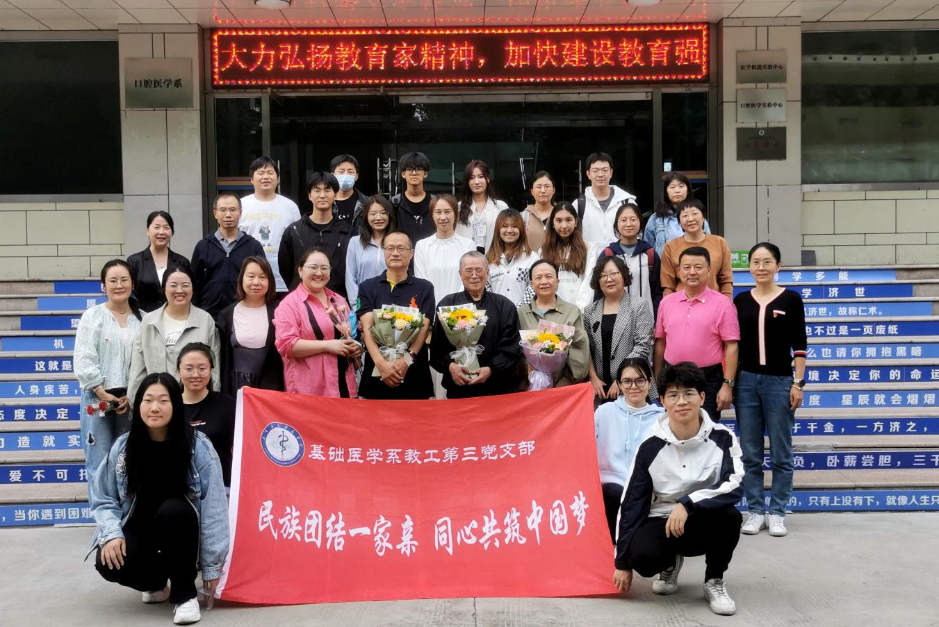 在教师节与中秋节来临之际,基础医学系教工第三党支部与结亲的同学们共同举办了一场意义深远的庆祝活动,活动现场洋溢着浓厚的节日氛围和师生间的深厚情谊。