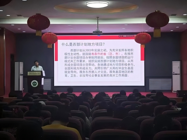 肖盛中老师就西部计划报名条件、各专项内容及相关政策福利等进行详细解读。肖盛中老师表示,作为兵团高校,希望同学们能传承和发扬兵团精神,积极关注大学生志愿服务西部计划,为兵团的建设和发展注入青春活力,为基层工作贡献青春力量,同时也为自己的未来铺设更广阔的选择。