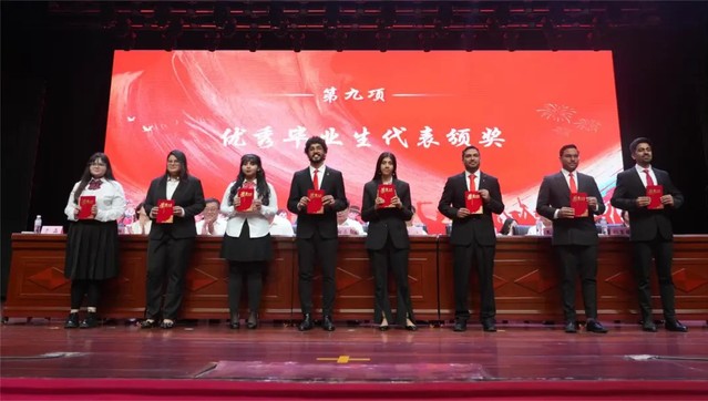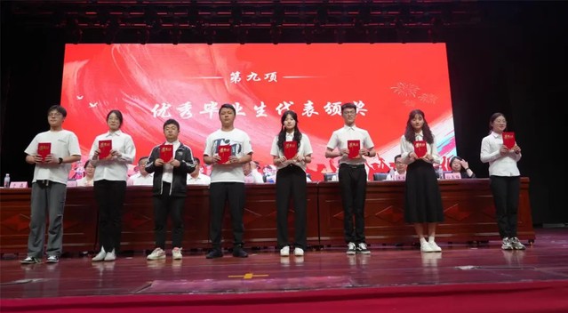 大会第九项 为2024届校级本科、研究生、留学生优秀毕业生的学生代表颁奖。