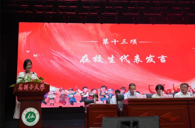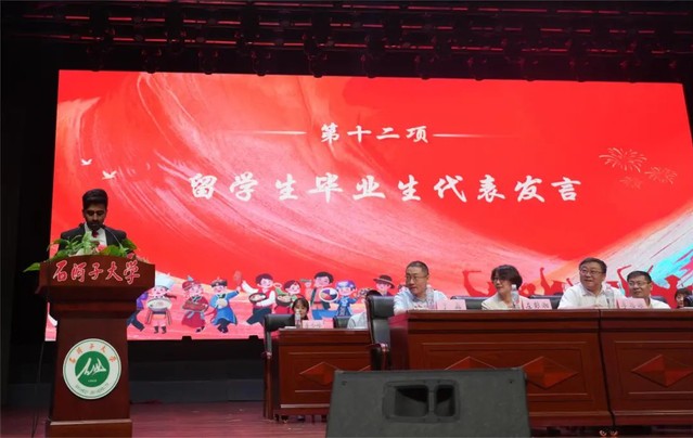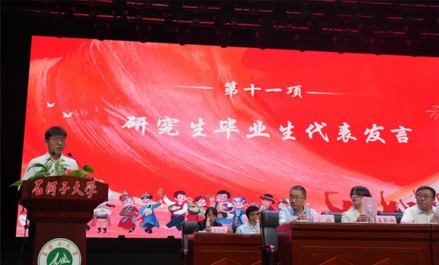 大会第十一项 研究生毕业生代表孙立明发言。他用石大是“港湾”是“舞台”回顾了在yl23455永利官网求学的数载。分享了他通过重重考核成功入职开启自己“打工人”之旅的背后,是感恩母校为莘莘学子提供了系统的医学教育、扎实的科研训练,以及探索专业领域以外的平台和机会。