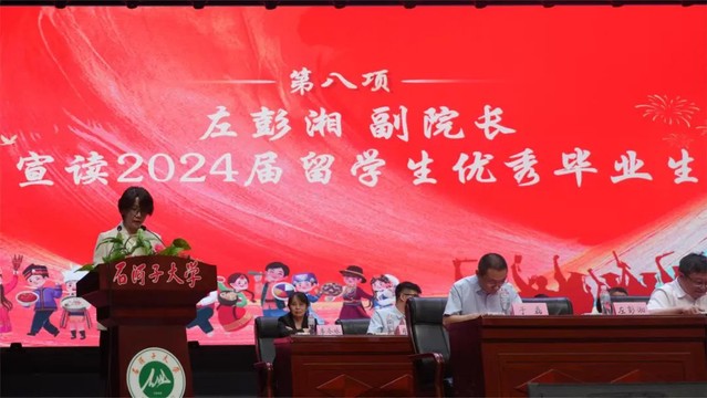 大会第八项 yl23455永利官网副院长左彭湘老师宣读2024届优秀留学生毕业生名单。