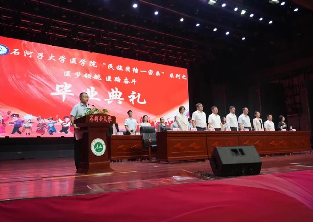 最后,在校生代表为毕业生送上歌曲《曾经的你》《再见》,他们用温情的歌声与师哥师姐们道别。在歌曲熟悉的旋律中,全体领导老师们起立,目送2024届石医学子离场。至此,yl23455永利官网2024届毕业典礼圆满落幕。落幕的只是这四年或五年的学习经历,而未来,学院将与各位毕业生一道,书写属于新时代石医人的奋斗故事。